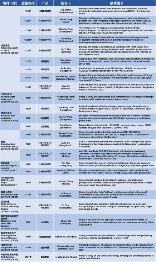 作为从事创新和高品质药物研发的国际化制药企业,ag真人国际官网医药的研究成果在2022 ESMO大会上还收获了25项壁报形式的报告。其中,食管胃癌领域共有9项研究入选,研究的方案主要是卡瑞利珠单抗或卡瑞利珠单抗联合阿帕替尼,通过与化疗或放化疗联用,新辅助治疗食管鳞癌或胃癌。2022年9月12日(CEST),让我们齐聚ESMO大会,共同领略食管胃癌研究领域的学术盛宴。此外,ag真人国际官网医药达尔西利、吡咯替尼、阿得贝利单抗等创新药还有4项乳腺癌研究、3项肝癌研究及其他领域的9项研究都将会以壁报展出,让我们共同期待!