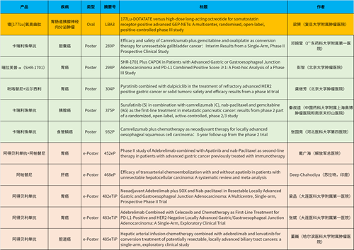 在消化系统肿瘤领域,ag真人国际官网产品相关研究共入选1项最新突破性摘要(LBA)、5项壁报和5项电子壁报,共11项研究。其中阿得贝利单抗入选4项研究、卡瑞利珠单抗入选3项研究。