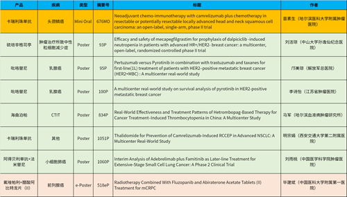 在头颈肿瘤、乳腺癌、肺癌、前列腺癌等多个疾病领域,卡瑞利珠单抗、阿得贝利单抗、吡咯替尼、氟唑帕利、法米替尼、醋酸阿比特龙片(II)等抗肿瘤新药相关研究一共入选了1项简短口头报告、4项壁报展示和1项电子壁报,彰显了ag真人国际官网医药强劲的研发实力。